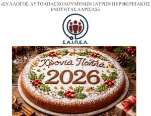 Με ιδιαίτερη χαρά προσκαλούμε όλους τους φίλους συναδέλφους,μέλη και μη, στην κοπή της πίτας του συλλόγου μας για το 2026.